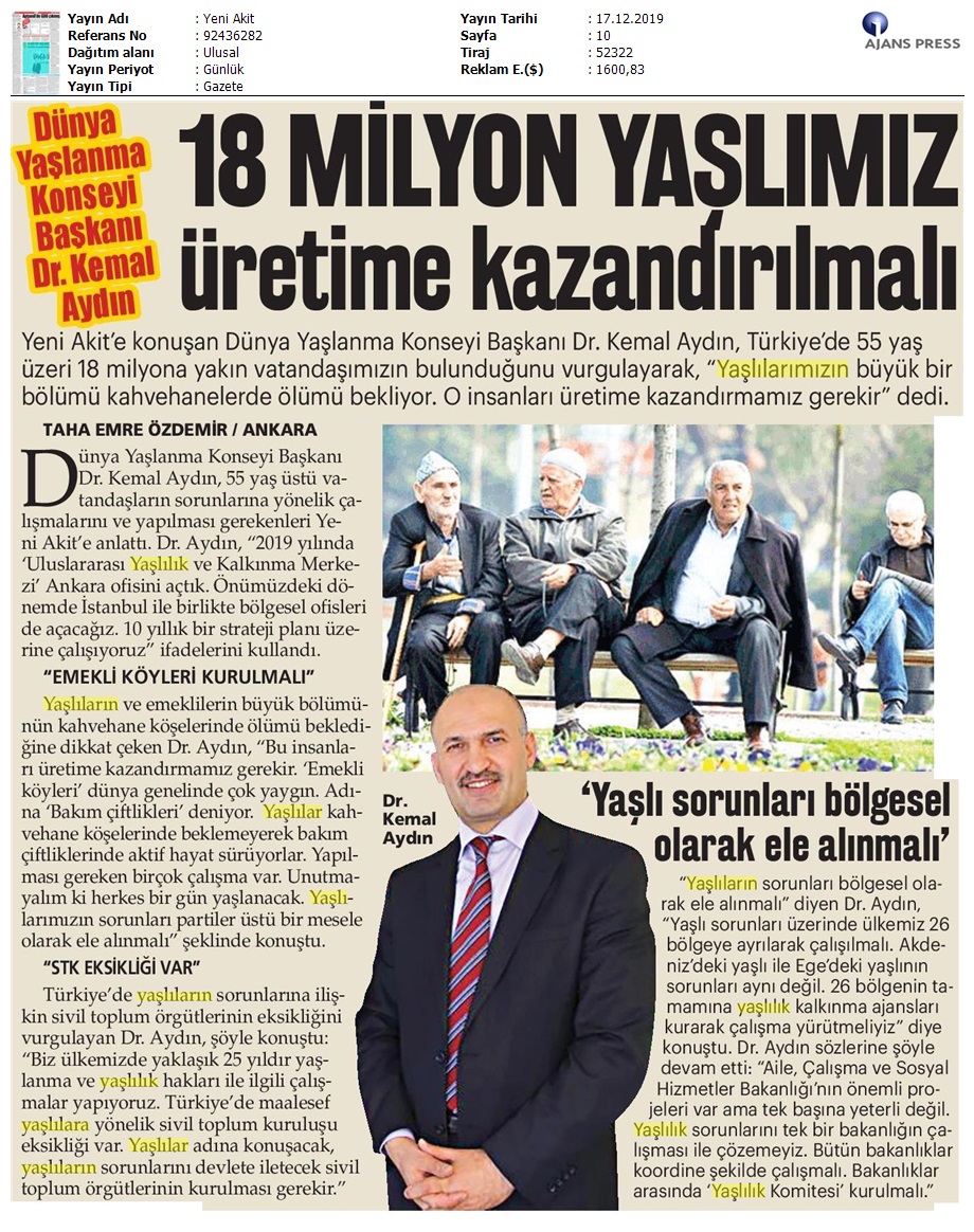 Basında Yaşlılık“18 milyon yaşlımız üretime katılmalı” Şubat 12, 2021 tarafından gönderildi alıntıdır 17 Ara ``18 milyon yaşlımız üretime katılmalı`` Not: Bu Yazı Yeni Akit Gazetesinde 16.12.2019 tarihinde 10. sayfasında yayınlanmaktadır.