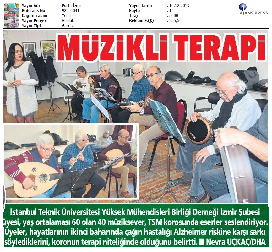 Basında YaşlılıkAlzheimer’a Karşı Müzikli Terapi Şubat 12, 2021 tarafından gönderildi alıntıdır 01 Oca Alzheimer'a Karşı Müzikli Terapi Not: Bu Yazı Posta İzmir Gazetesinde 10.12.2019 tarihinde 1. sayfasında yayınlanmaktadır.