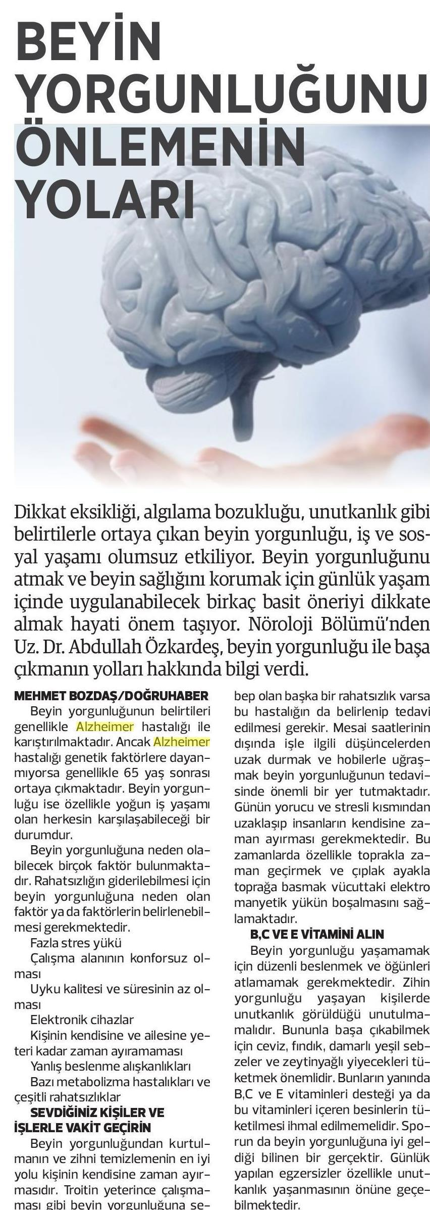 Basında YaşlılıkBeyin Yorgunluğunu Önlemenin Yolları Şubat 12, 2021 tarafından gönderildi Şadiye Dönümcü 25 Haz Beyin Yorgunluğunu Önlemenin Yolları
