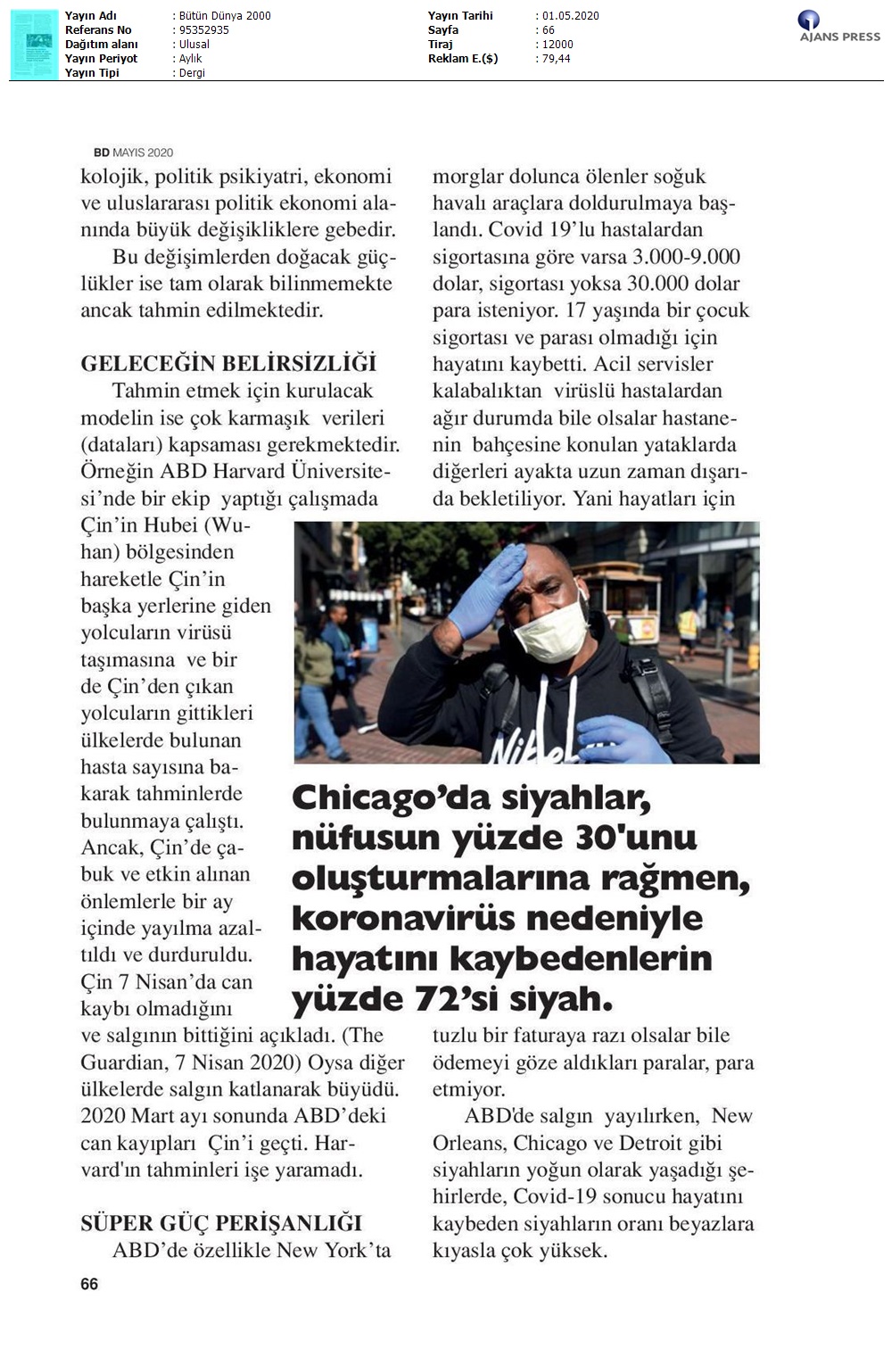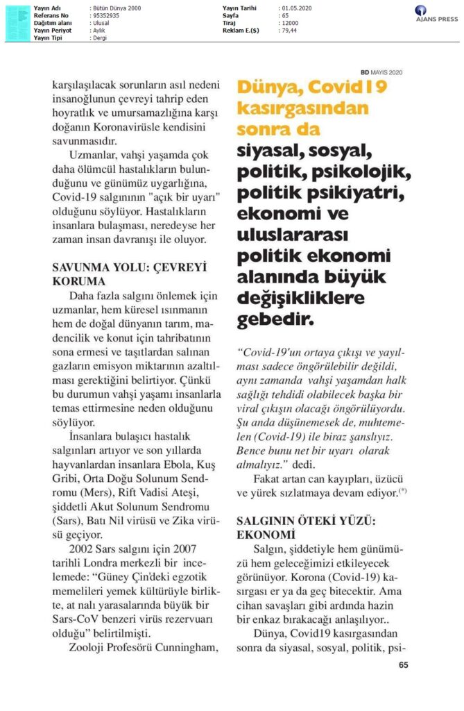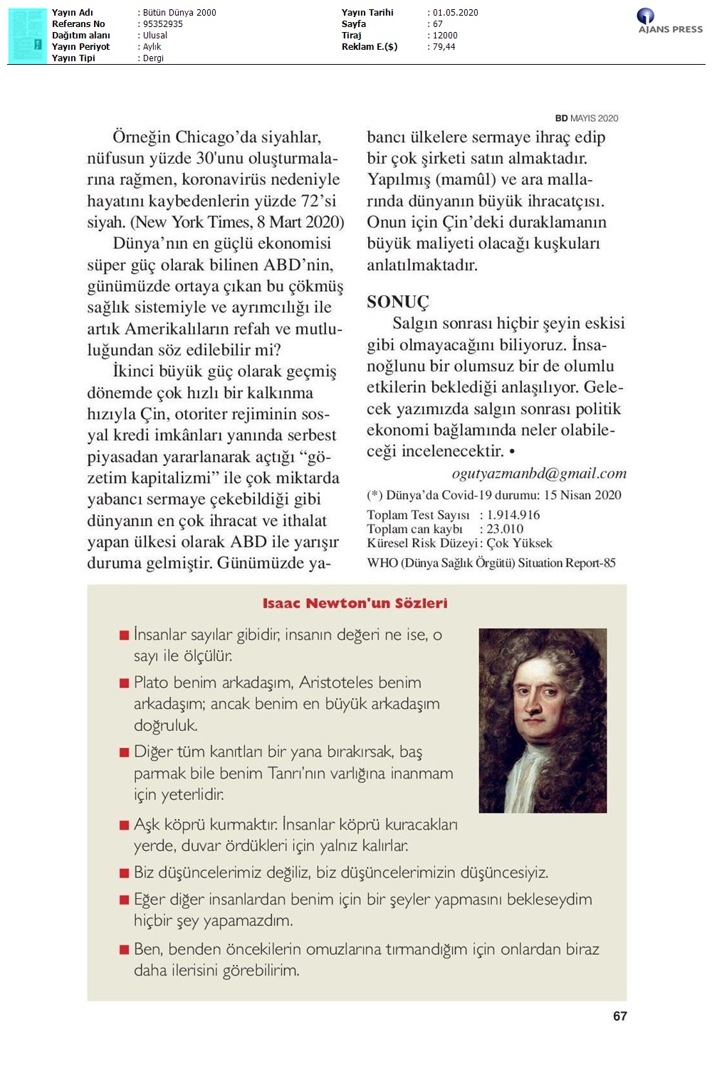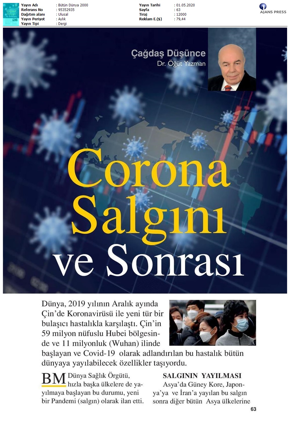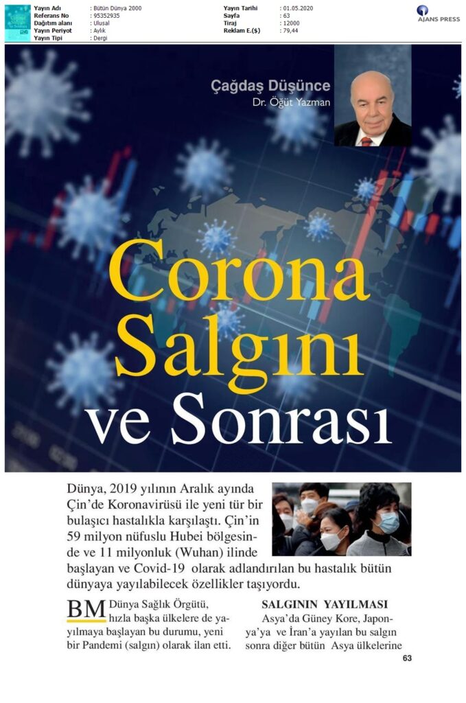 Not: Bu Yazı Bütün Dünya 2000 Dergisinde 05.05.2020 tarihinde 63. sayfasında yayınlanmaktadır.