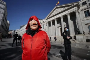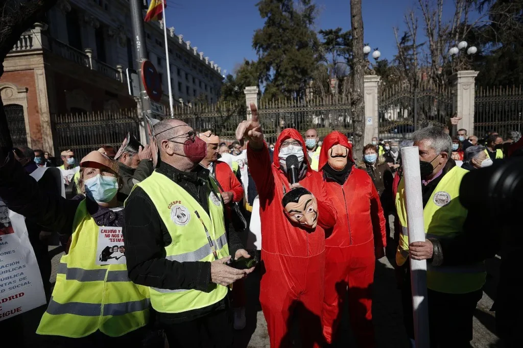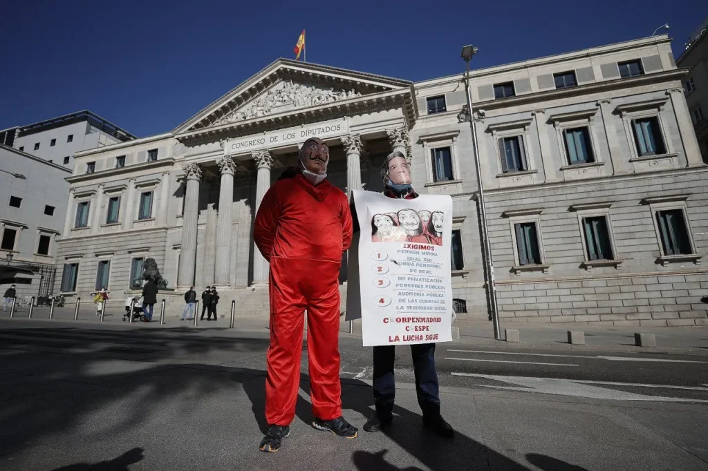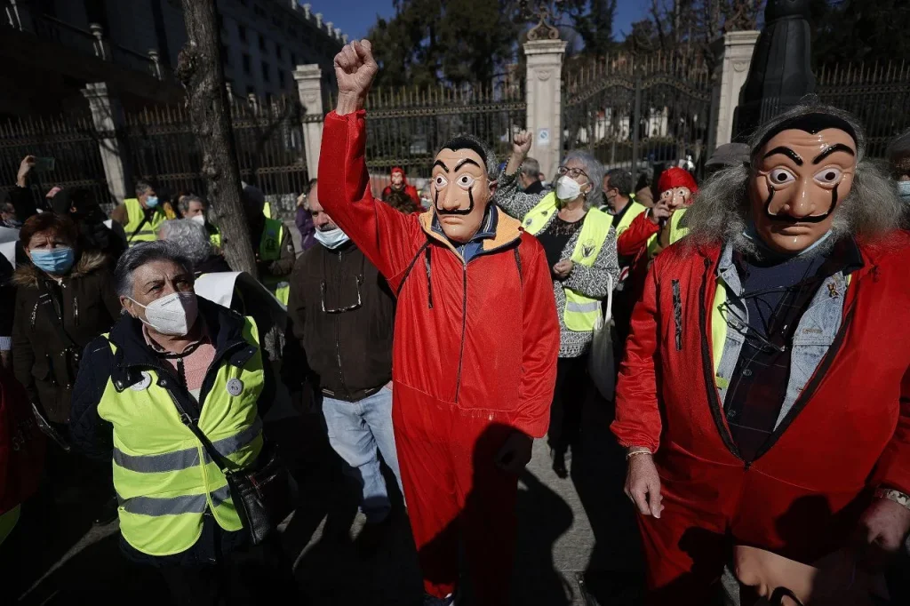 İspanya’da emekliler, ekonomik ve sosyal haklarında iyileştirme talebiyle başkent Madrid’de yaptıkları eylemde, dünyaca ünlü “La Casa de Papel” dizisinin başaktörlerinin kullandığı kostümleri giydi.