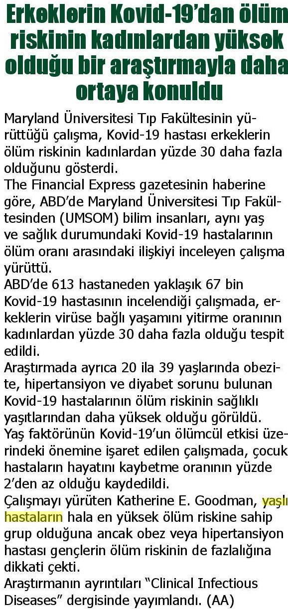 Basında YaşlılıkErkeklerin Kovid-19’dan Ölüm Riskinin Kadınlardan Yüksek Olduğu Bir Araştırmayla Daha Ortaya Koyuldu Şubat 12, 2021 tarafından gönderildi alıntıdır 21 Ara Erkeklerin Kovid-19'dan Ölüm Riskinin Kadınlardan Yüksek Olduğu Bir Araştırmayla Daha Ortaya Koyuldu