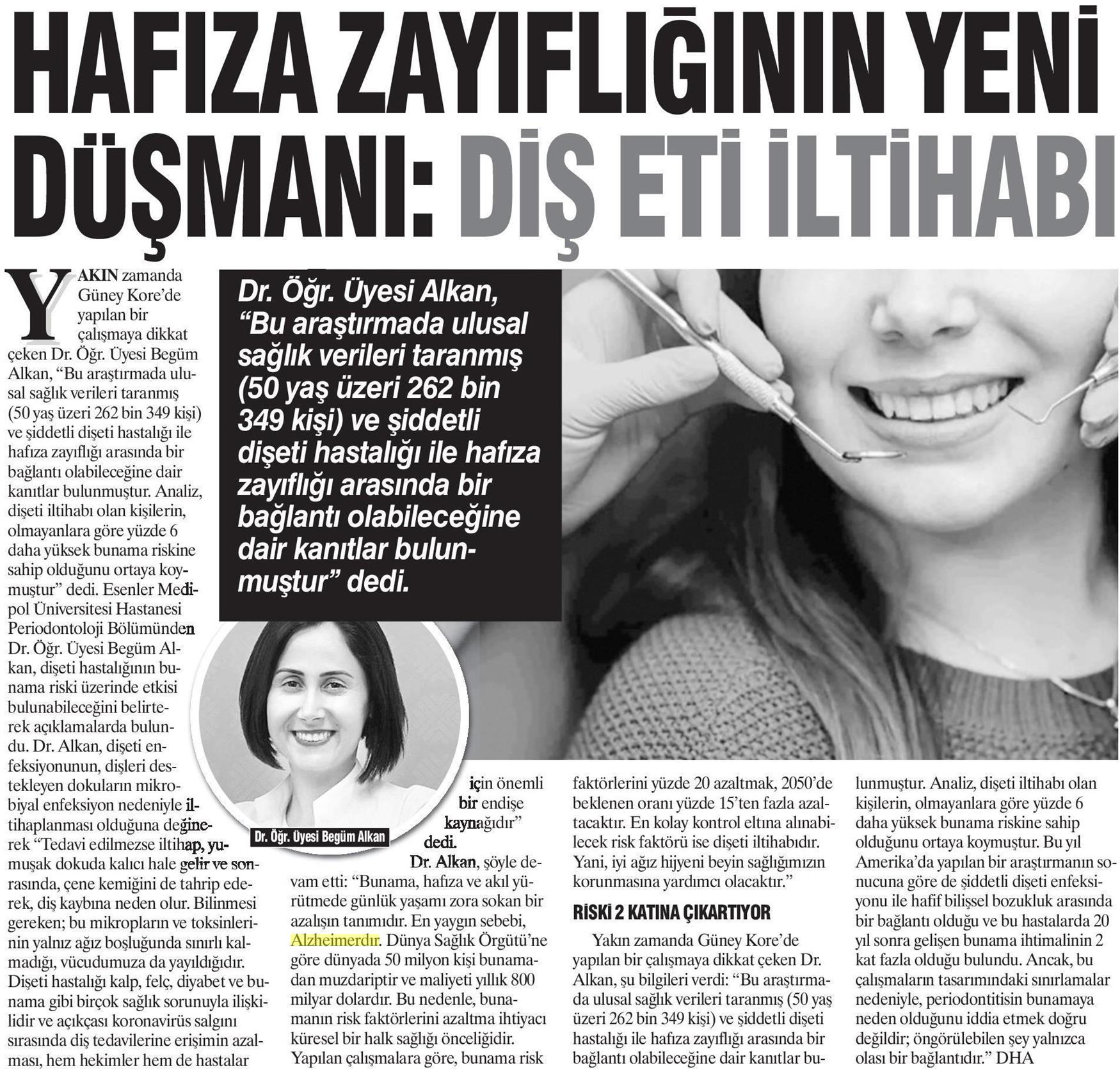 Basında YaşlılıkHafıza Zayıflığının Yeni Düşmanı : Diş Eti İltihabı Şubat 12, 2021 tarafından gönderildi alıntıdır 27 Eyl Hafıza Zayıflığının Yeni Düşmanı : Diş Eti İltihabı