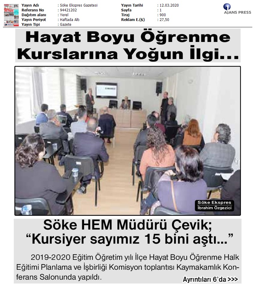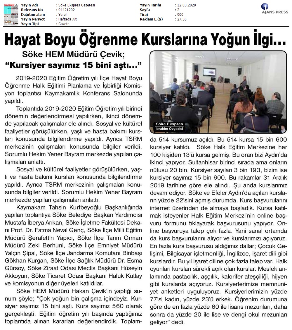 Basında Yaşlılık, Aktif YaşlanmaHayat Boyu Öğrenme Kurslarına Yoğun İlgi Şubat 12, 2021 tarafından gönderildi alıntıdır 12 Mar Hayat Boyu Öğrenme Kurslarına Yoğun İlgi Not: Bu Yazı Söke Ekspres Gazetesinde 12.03.2020 tarihinde 1. sayfasında yayınlanmaktadır.