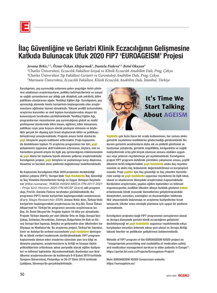 İlaç Güvenligine ve Geriatrik Klinik Eczacılığının Gelişmesiine Katkıda Bulunacak Ufuk 200 FIP7 ``EUROGEISM`` Projesi