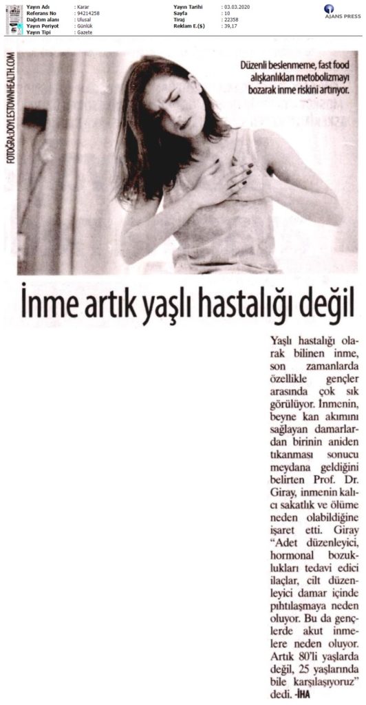 Basında Yaşlılıkİnme Artık Yaşlı Hastalığı Değil Şubat 12, 2021 tarafından gönderildi alıntıdır 03 Mar İnme Artık Yaşlı Hastalığı Değil Not: Bu Yazı Karar Gazetesinde 03.03.2020 tarihinde 10. sayfasında yayınlanmaktadır.