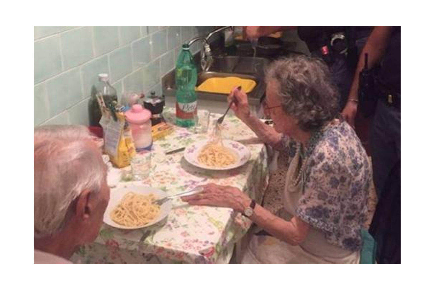 Olay (özetle): Yüksek sesli ağlama ve bağırma sesleri geldiği ihbarı alan polis 70 yıldır beraber olan Jole (84) ve Michele (94) çiftinin evine gittiğinde suç unsuru bulamaz. Televizyon izlerken kendilerini kötü hisseden yaşlı çiftin ağlama-bağırma seslerini duyan apartmandan birinin durumu polise şikayet ettiği anlaşılır. Evde, birazcık üzüm dışında yiyecek yoktur. Çağırdıkları ambulans gelene kadar polisler, yaşlı çifte makarna pişirir. Yemek esnasında da sohbet ederler.