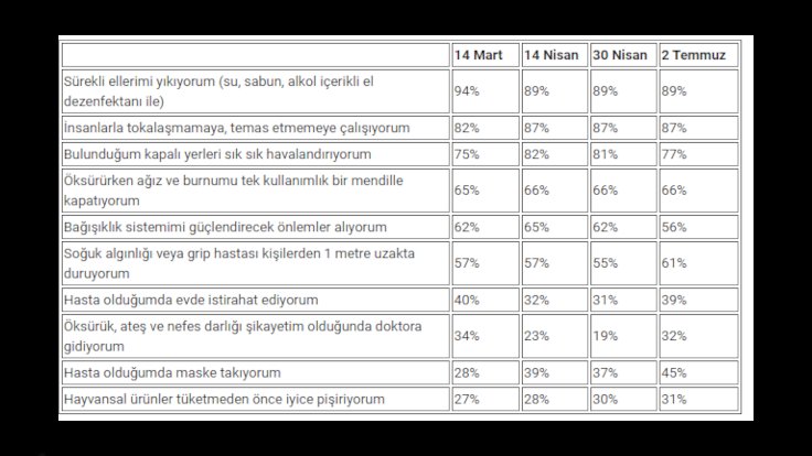 Korona virüsü hakkında bilgi sahibi olduğunu belirten kişilerin oranı da değişiklik göstermedi. İlginç noktalardan biri yüzde 3 de olsa bir kesimin korona virüsüne ilişkin halen yeterli bilgiye sahip olmadığını belirtmesi oldu.