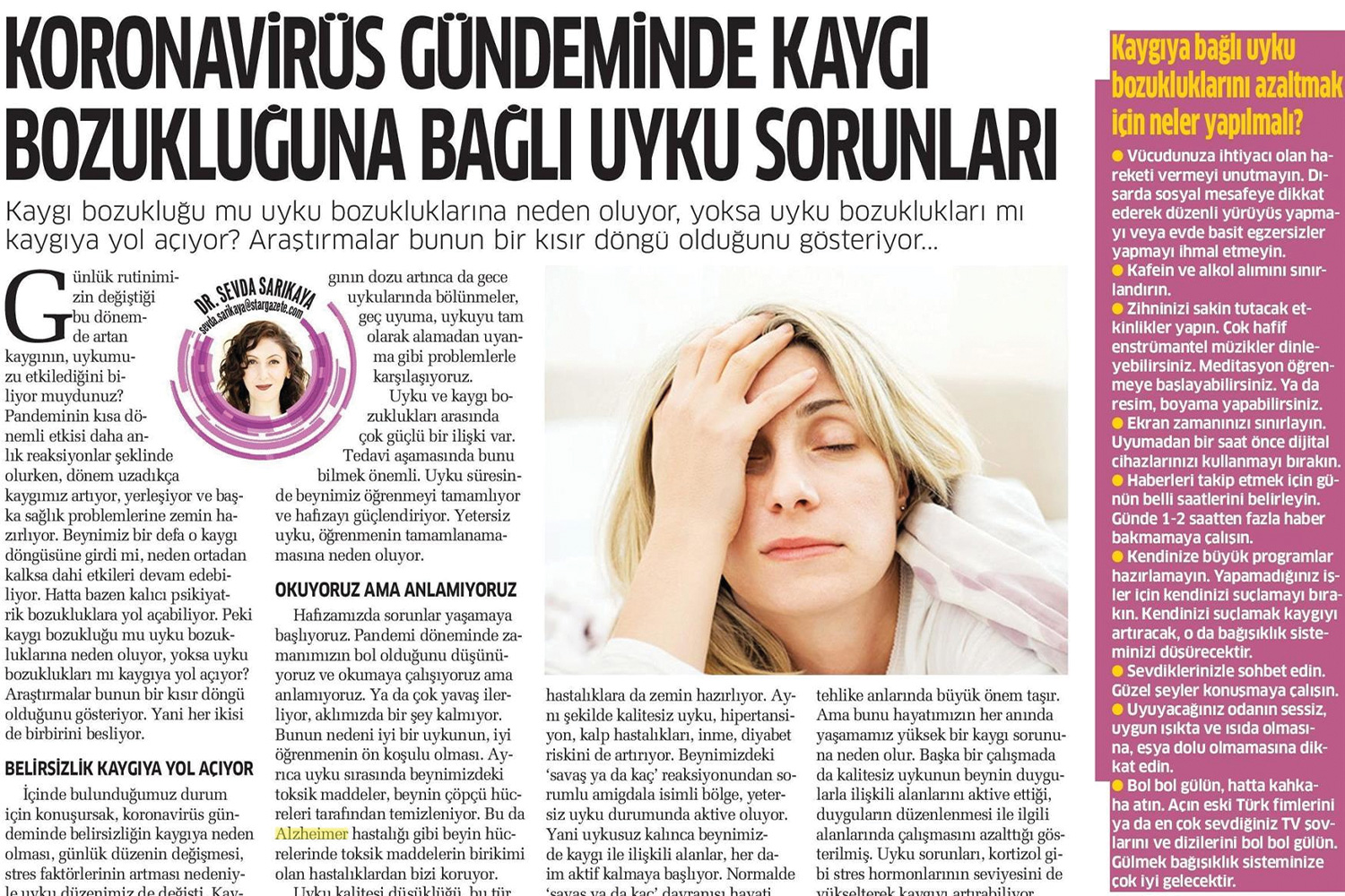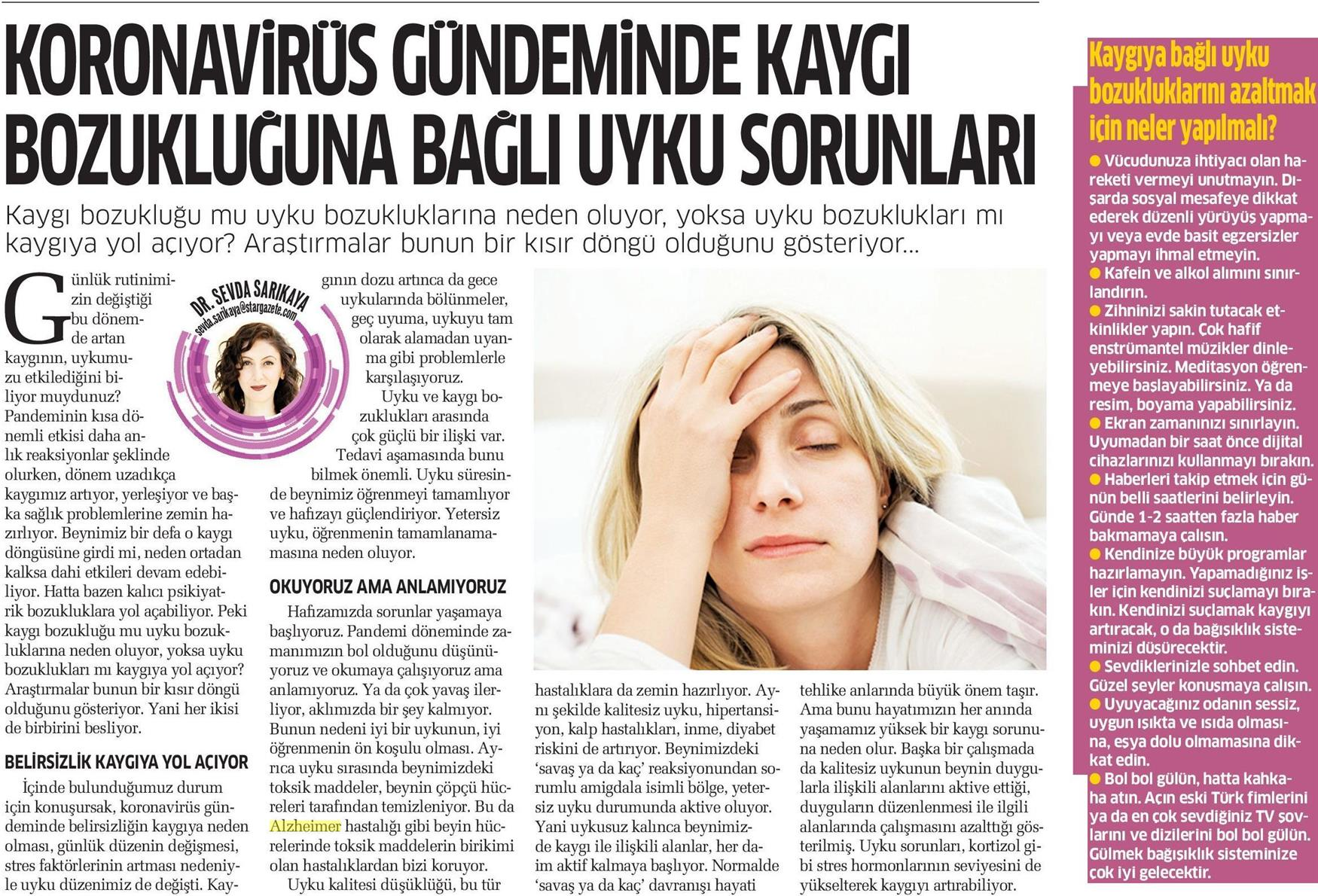 Koronavirüs Gündeminde Kaygı Bozukluğuna Bağlu Uyku Sorunları