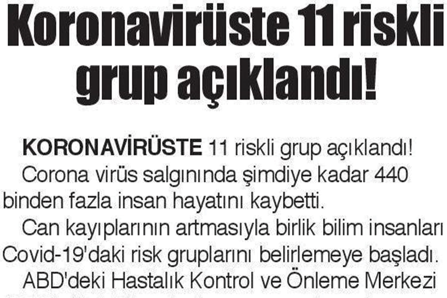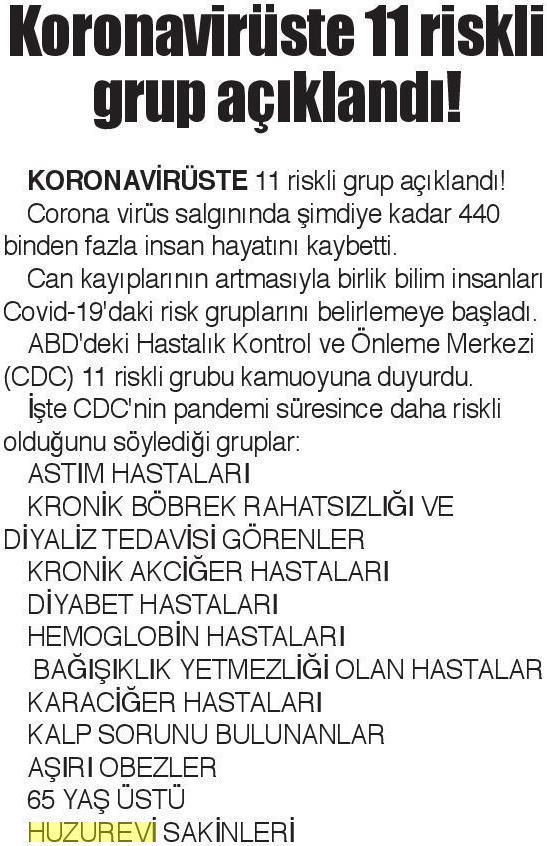 Basında YaşlılıkKoronavrüste 11 Riskli Gurup Açıklandı Şubat 12, 2021 tarafından gönderildi alıntıdır 18 Haz Koronavrüste 11 Riskli Gurup Açıklandı