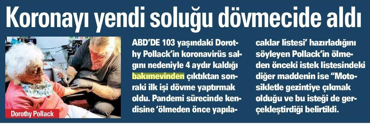 Basında YaşlılıkKoronayı Yendi Soluğu Dövmecide Aldı Şubat 12, 2021 tarafından gönderildi alıntıdır 13 Ağu Koronayı Yendi Soluğu Dövmecide Aldı