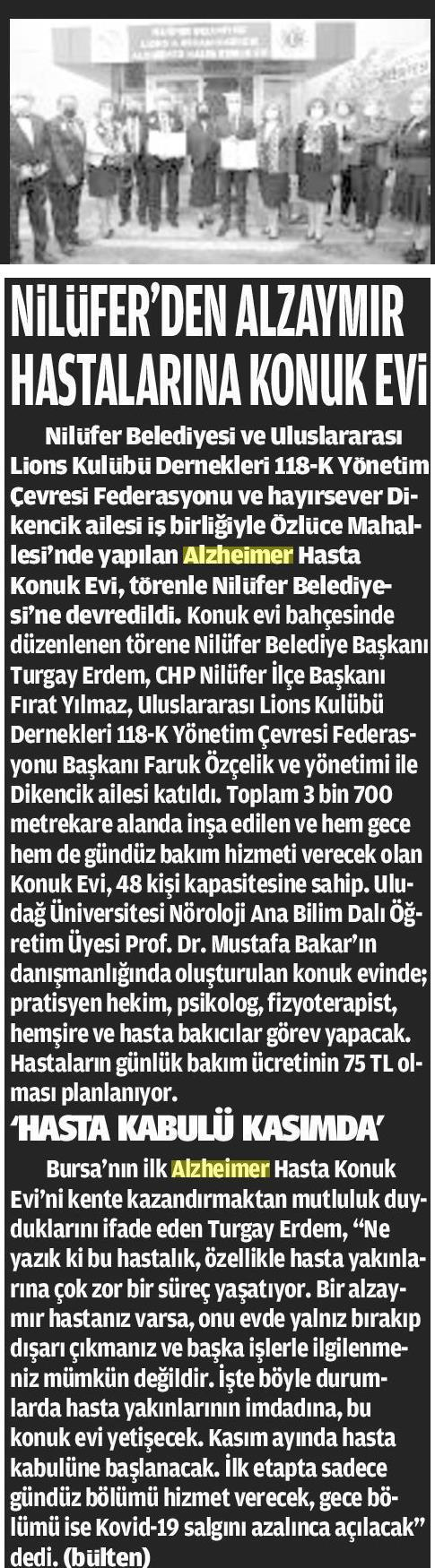 Basında YaşlılıkNilüfer’den Alzheimer Hastalarına Konuk Evi Şubat 12, 2021 tarafından gönderildi alıntıdır 04 Kas Nilüfer'den Alzheimer Hastalarına Konuk Evi