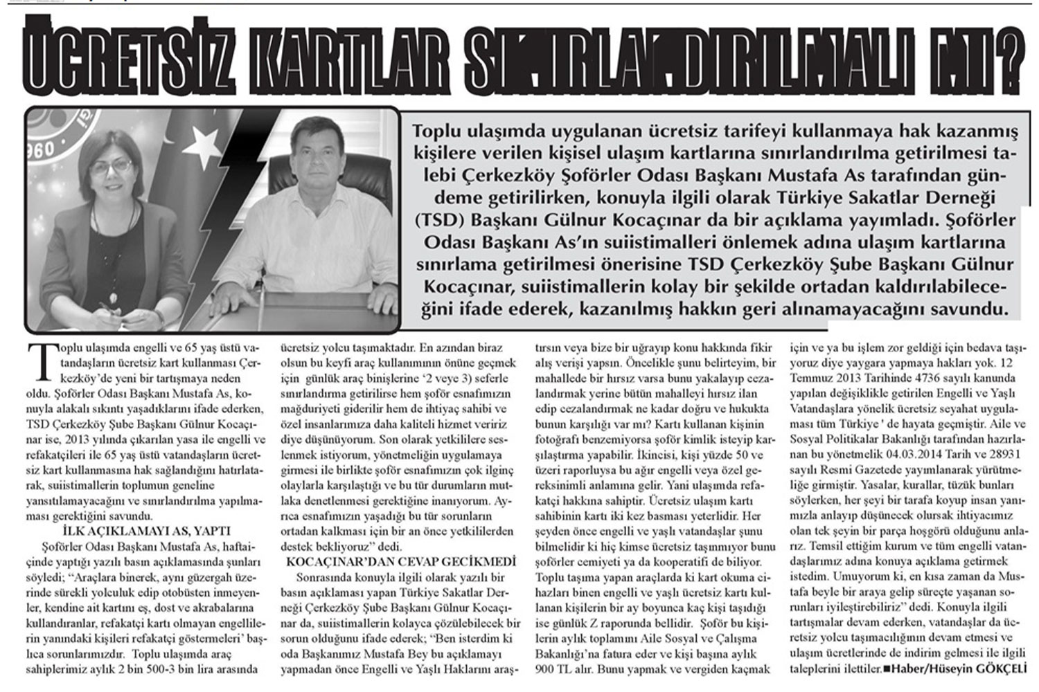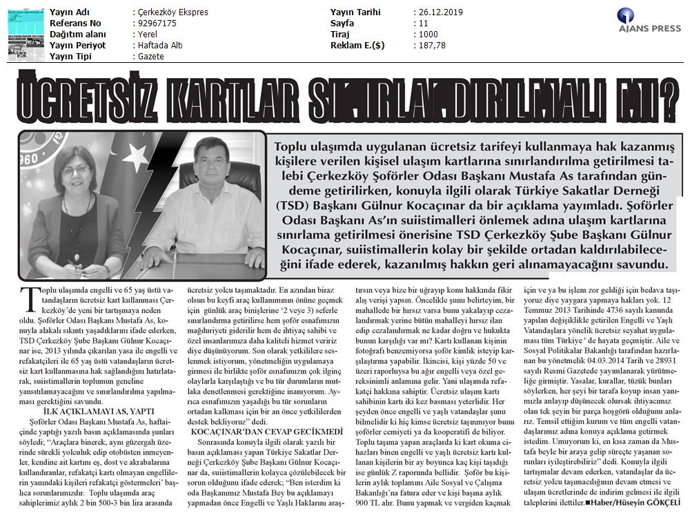 Not: Bu Yazı Çerkezköy Ekspres  Gazetesinde 26.12.2019 tarihinde 11. sayfasında yayınlanmaktadır.