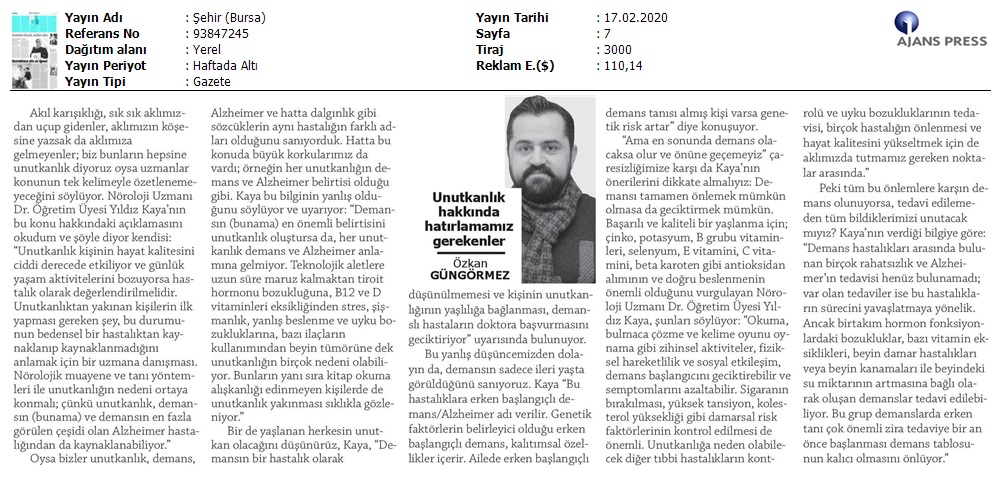 Not: Bu Yazı Şehir (Bursa) Gazetesinde 17.02.2020 tarihinde 7. sayfasında yayınlanmaktadır.