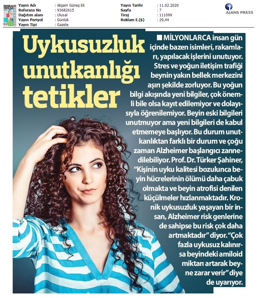 Basında YaşlılıkUykusuzlu Unutkanlığı Tetikler Şubat 12, 2021 tarafından gönderildi alıntıdır 11 Şub Uykusuzlu Unutkanlığı Tetikler Not: Bu Yazı Akşam Güneş Ek Gazetesinde 11.02.2020 tarihinde 7. sayfasında yayınlanmaktadır.