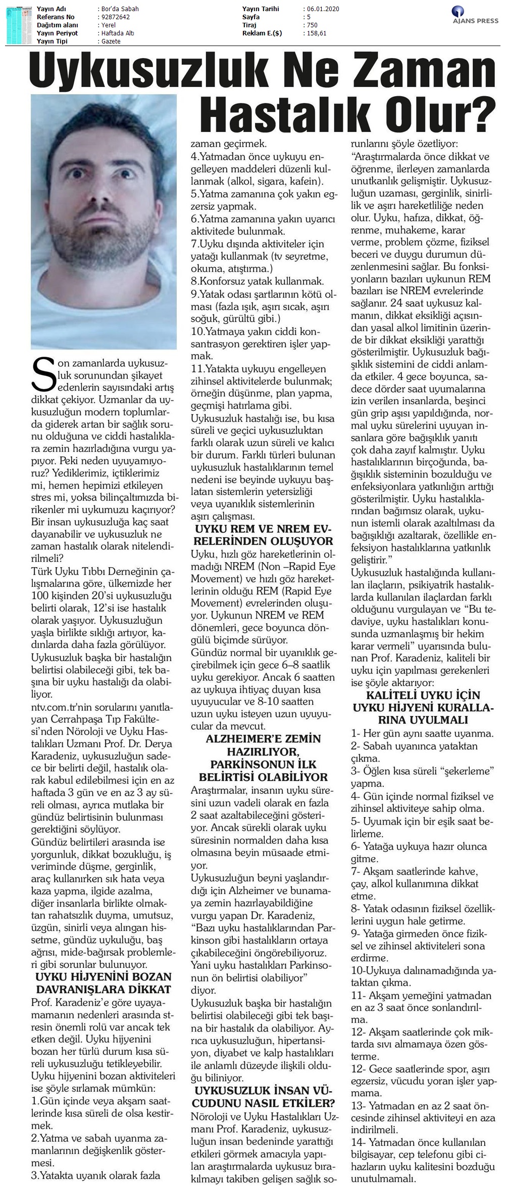 Basında YaşlılıkUykusuzluk Ne Zaman Hastalık Olur? Şubat 12, 2021 tarafından gönderildi alıntıdır 08 Oca Uykusuzluk Ne Zaman Hastalık Olur? Not: Bu Yazı Bor’da Sabah Gazetesinde 06.01.2020 tarihinde 5. sayfasında yayınlanmaktadır.