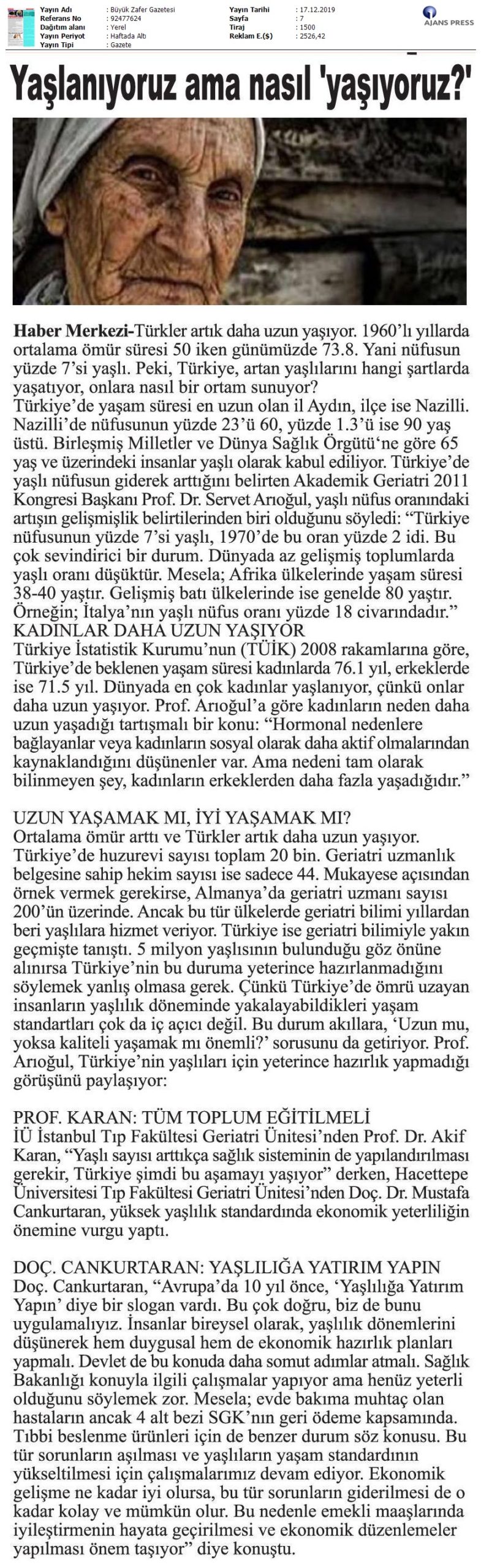 Not: Bu Yazı Büyük Zafer Gazetesi Gazetesinde 17.12.2019 tarihinde 7. sayfasında yayınlanmaktadır.