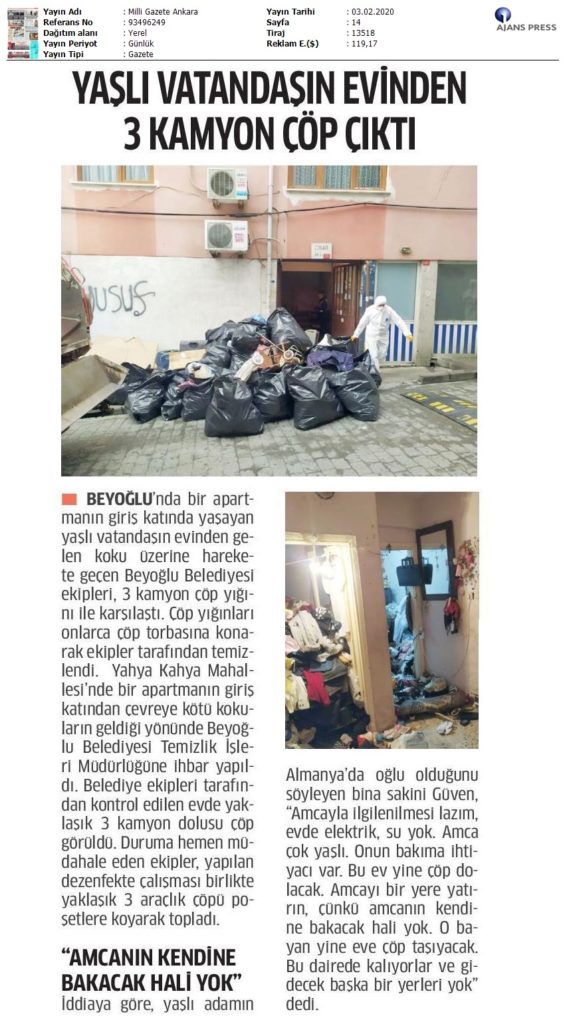 Basında YaşlılıkYaşlı Vatandaşın Evinden 3 Kamyon Çöp Çıktı Şubat 12, 2021 tarafından gönderildi alıntıdır 03 Şub Yaşlı Vatandaşın Evinden 3 Kamyon Çöp Çıktı Not: Bu Yazı Milliyet Ankara Gazetesinde 03.02.2020 tarihinde 14. sayfasında yayınlanmaktadır.