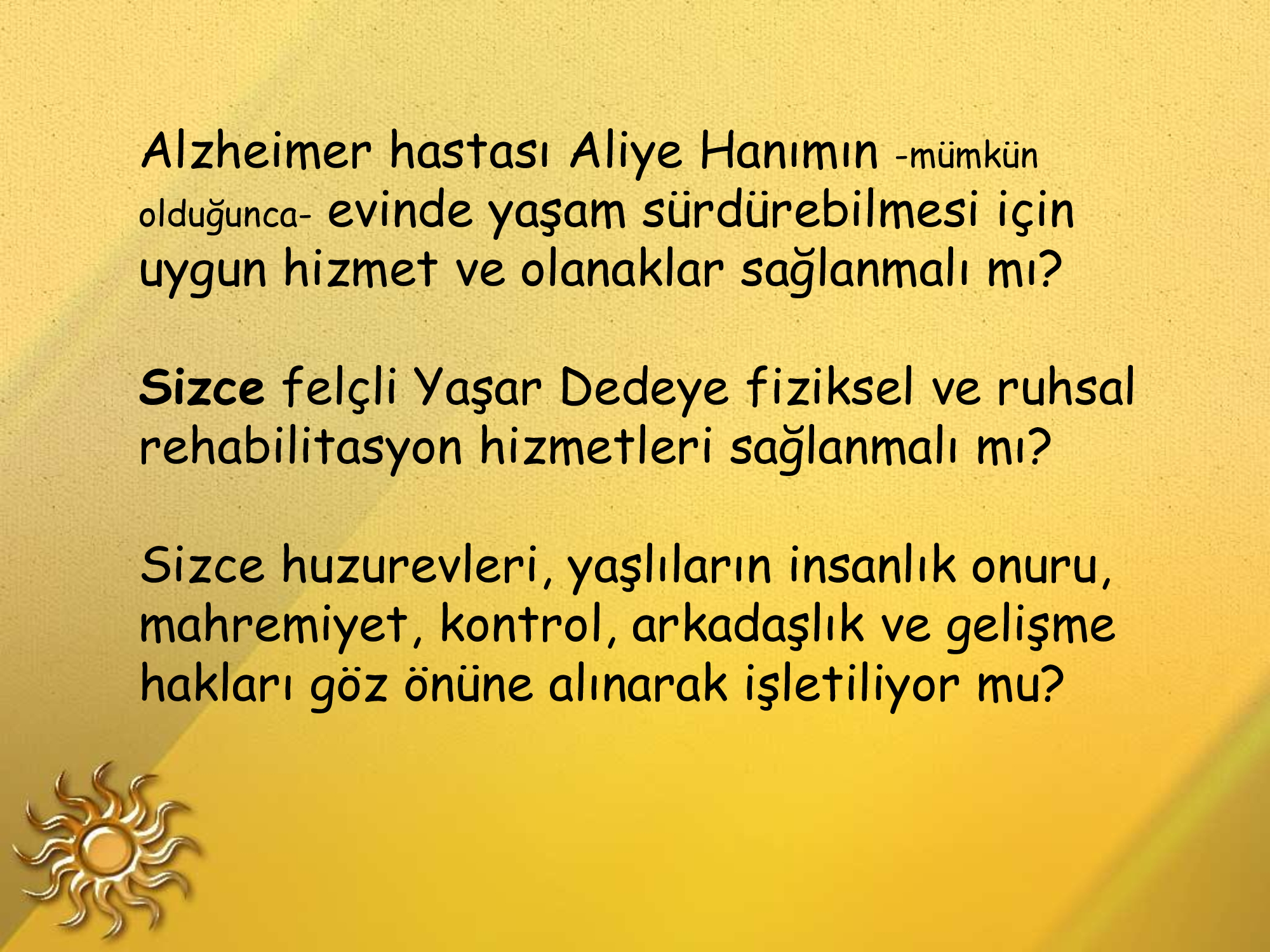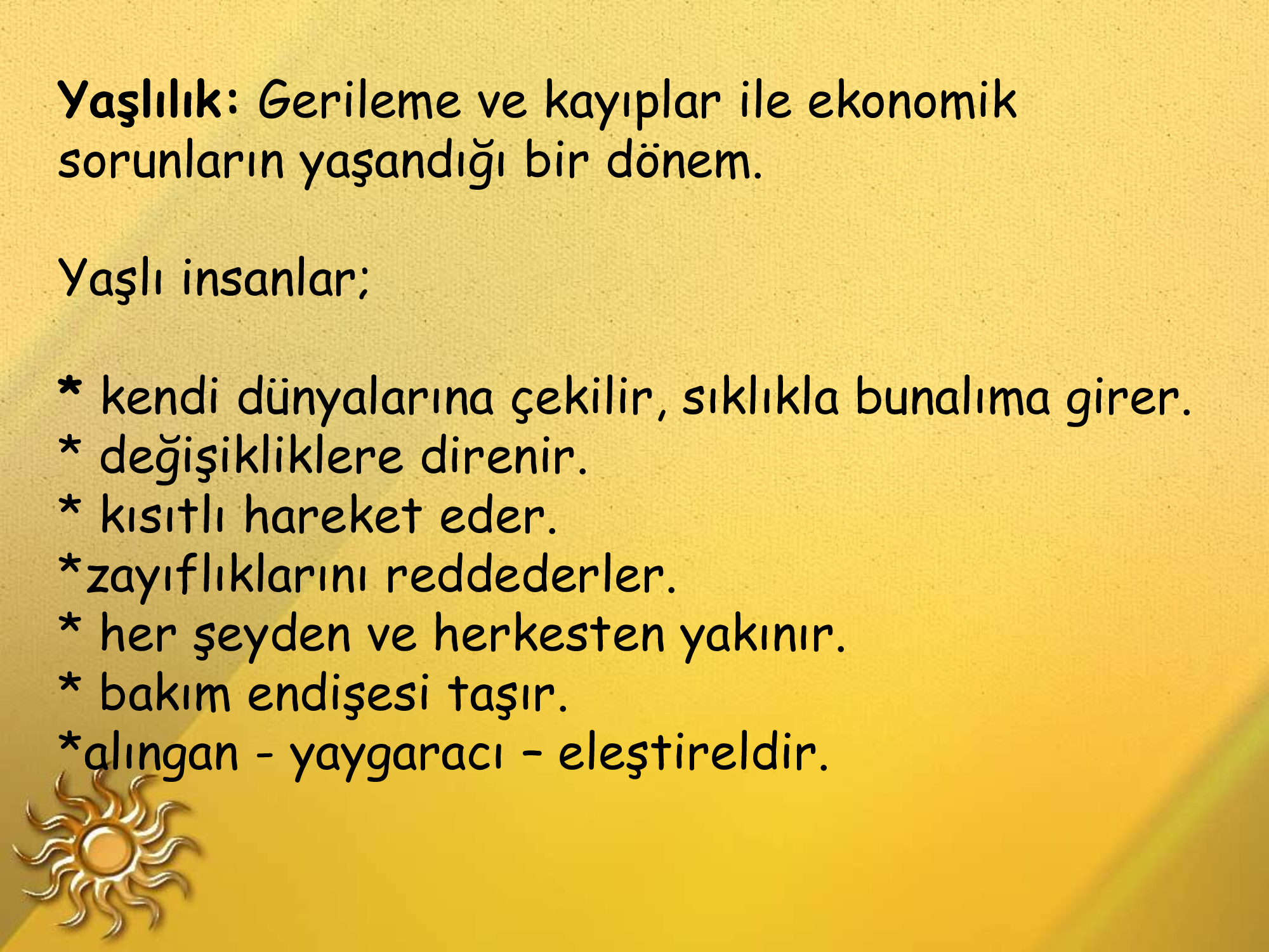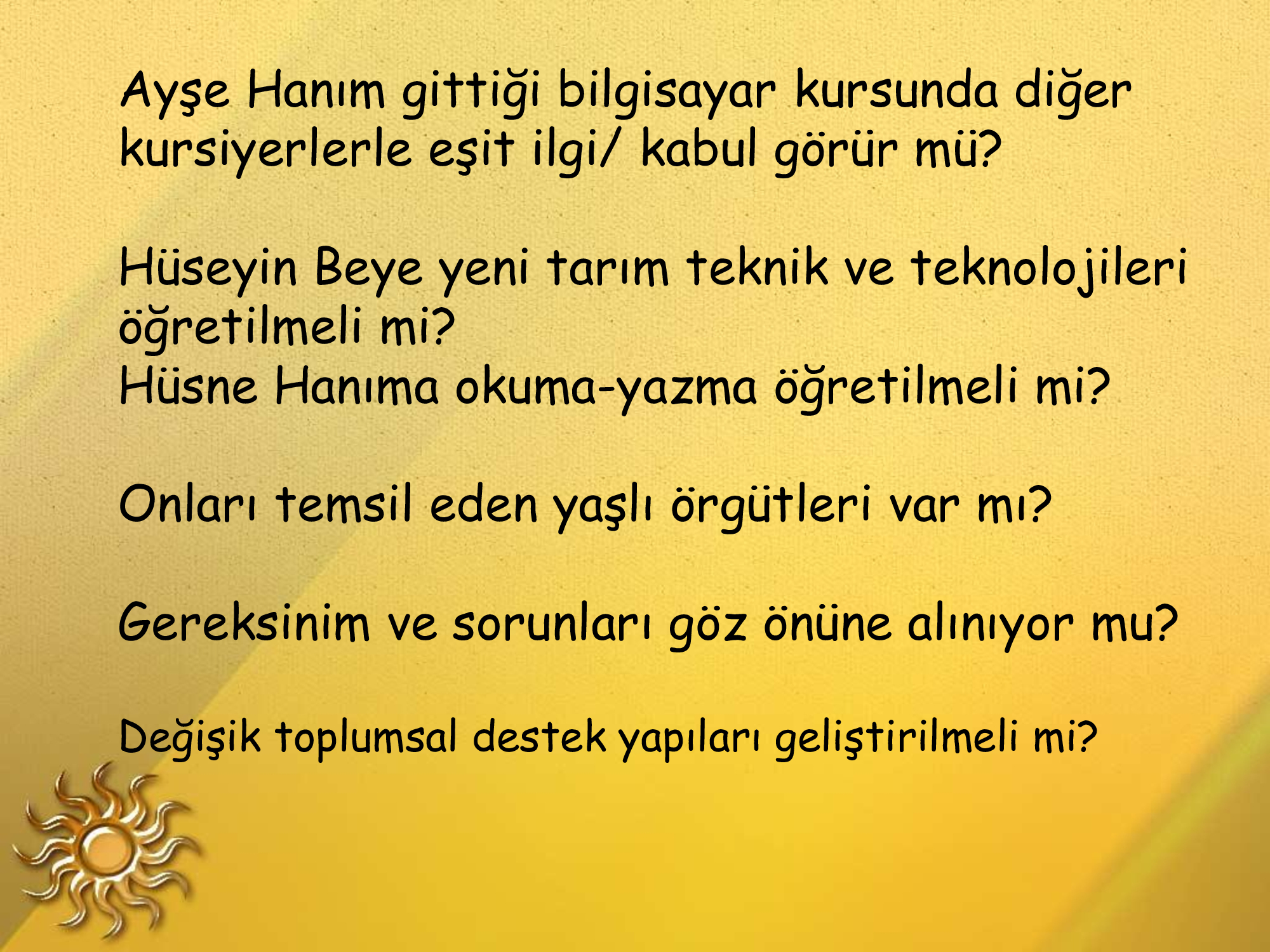 Yaşlılıkta da üretkenlik mümkündür yeter ki öğrenmeye açık olalım.Ben 76 yaşındayım ama hâlâ ortaokul lise öğrencilerine kendi branşında ve başka konularda yardımcı olabiliyorum.Bunun için de sürekli okuyorum.Önce kendimizi bırakmayacağız.Zamanın gerisinde kalmayacağız.
