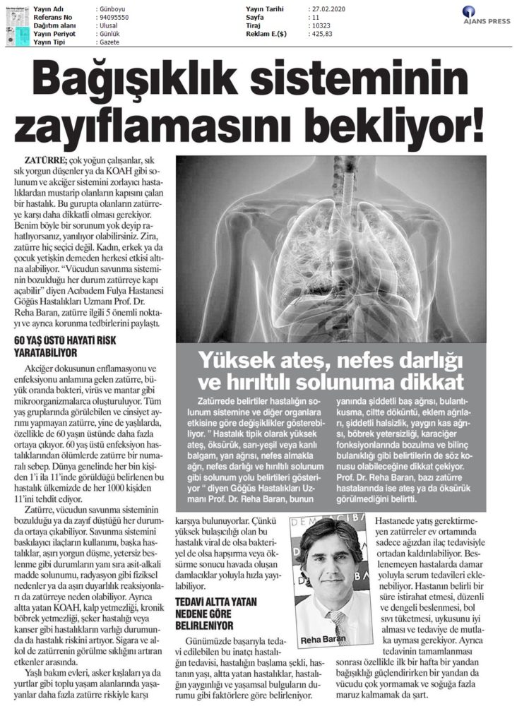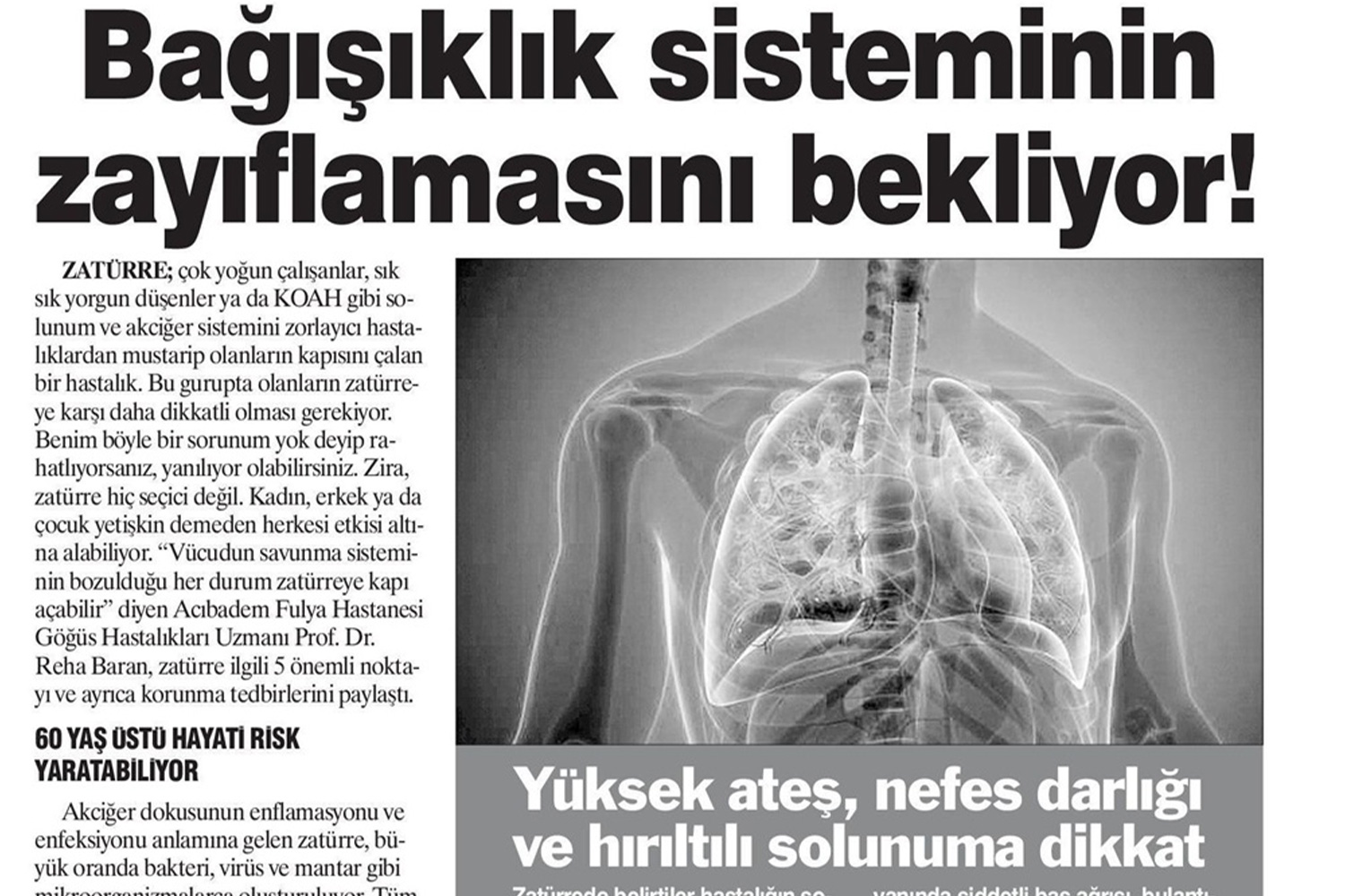 Zatürre Bağışıklık Sisteminin Zayıflamasını Bekliyor!